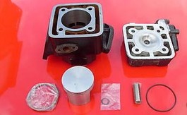 | "Tuningzylinder 120ccm - Yamaha DT/RD80 LC Maximaler Hubraum für die wassergekühlten 80er von Yamaha - hier ist es möglich! Volle 120ccm machen in Verbindung mit entsprechenden Anbauteilen aus der braven 80er ein echtes Kraftpaket, dass für unglaubliche Fahrleistungen sorgt! 60mm Bohrung, optimierte Steuerzeiten und Kanäle sowie ein spezieller Zylinderkopf mit O-Ring-Technik kennzeichnen dieses Zylinderkit. Eine großer Vergaser nebst durchsatzfreudigerer Membrane und angepasster Resonanzauspuffanlage sollten für bestmögliche Leistungsentfaltung montiert werden, allerdings ist sogar die Verwendung der Serienteile möglich, was für viel Drehmoment aus dem Keller sorgt." Quelle: http://www.nopitz.de/ |